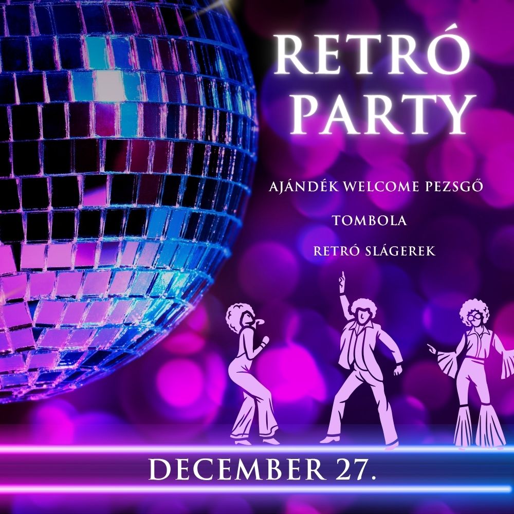 Éld át újra a retró bulik aranykorát a Cuvée Rendezvényházban! Szilveszter előtt egy fergeteges RETRO PARTY vár rád, ahol a ’70-es, ’80-as és ’90-es évek legnagyobb slágerei pörögnek videódiszkón, és DJ Regős gondoskodik róla, hogy a tánc és a jókedv garantált legyen egész este. Lepd meg magad és barátaidat egy felejthetetlen nosztalgiaélménnyel, gyere a legszínesebb retro outfitedben, élvezd a welcome pezsgőt az érkezéskor, és próbáld ki szerencsédet a tombola nyereményekért!